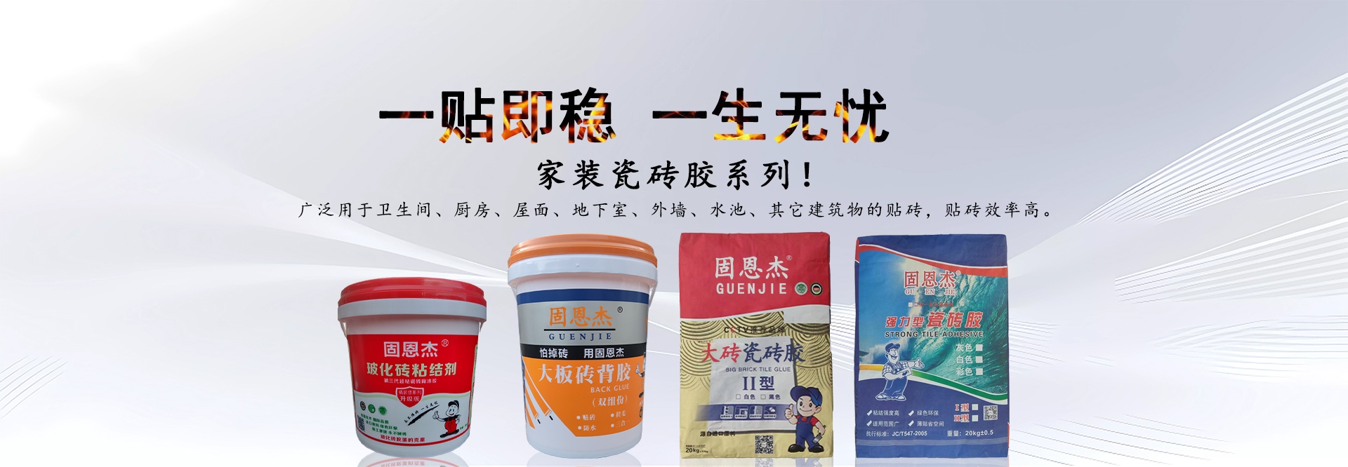 廣州固恩杰防水建材科技有限公司(簡稱:固恩杰)是集研發、生產、銷售于一體的高新技術建筑材料制造企業,與多個國際知名化工企業建立良好穩定的戰略合作伙伴關系,公司目標是打造中國最具競爭力的防水品牌 。公司產品具有質量穩定可靠、耐久性好、綠色環保、對人體健康無毒害作用、使用方便、粘結力強、耐候性好、提高工程質量、降低工程造價等優勢,是提升人們居住環境質量的換代產品,廣泛應用于新舊商住樓,賓館會所、辦公樓寓的室內外裝修工程。